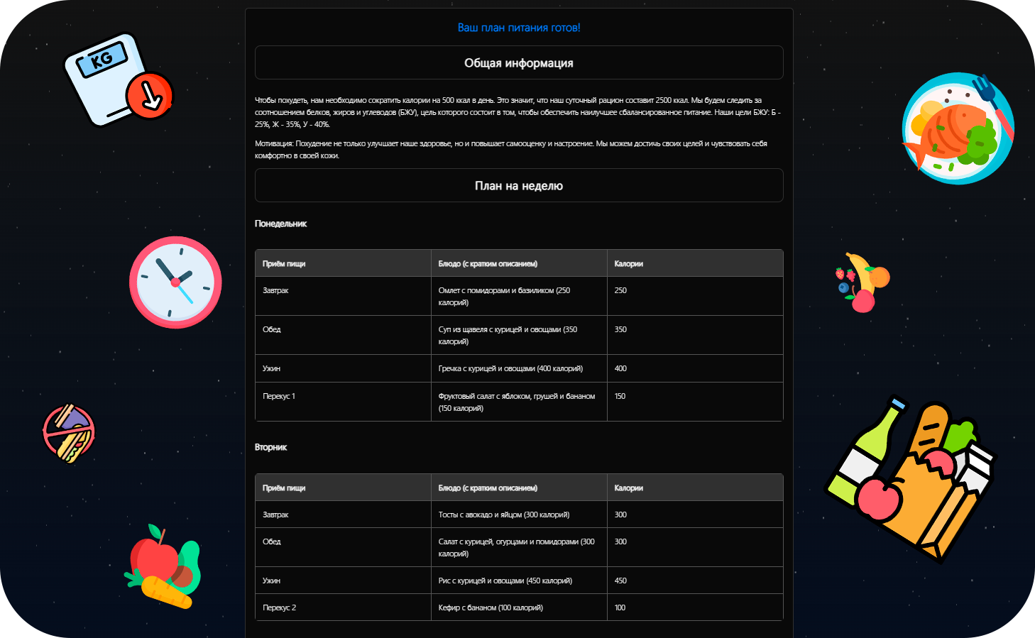 Оформите заявку на индивидуальную страницу сайта по плану питания за 199 ₽